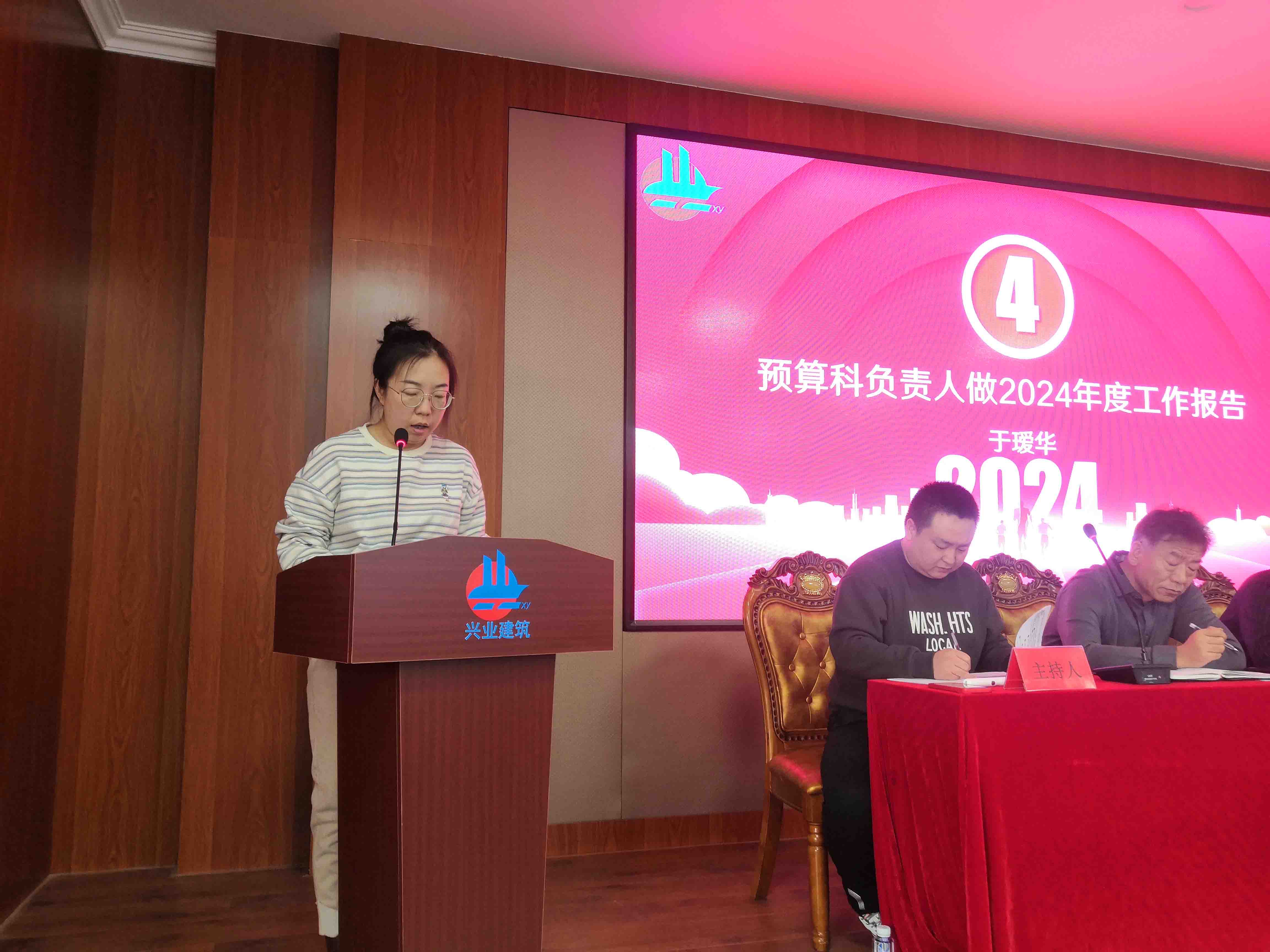 隨后,會議進入第二項議程,各部門負責人做工作報告。工程部生產(chǎn)經(jīng)理尚文章、辦公室主任商艷鵬、質安科科長李非、預算科科長于璦華以及財務科科長范國麗分別就各自部門2023年的工作情況進行了詳細匯報,并對2024年的工作計劃進行了展望。